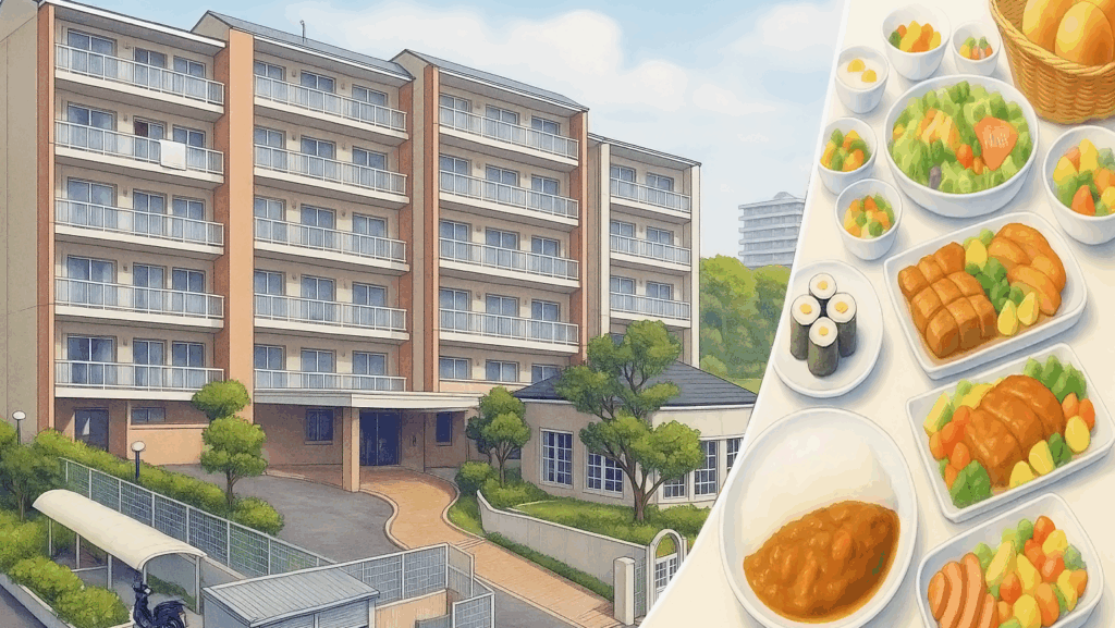 宿泊と食事を寮内で提供